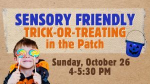 Join us for FREE Sensory Friendly Trick-or-Treating in our Pumpkin Patch on Sunday, October 26 from 4-5:30 PM. This is a ...