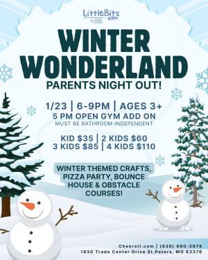 You won't want to miss our Winter Wonderland! Winter-themed crafts, pizza party, bounce house, obstacle courses, and open gym!