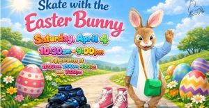 Come see the Easter Bunny! Saturday, April 4 10:30am-9:00pm $9.00 Admission $4.00 Skate Rental Appearances at 11:00am, 2:00pm, 4:00pm & 7:00pm!