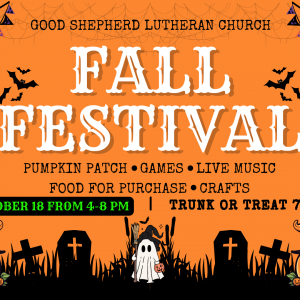 Come out to Good Shepherd for our Fall Festival and Trunk or Treat! Fall Festival 4 pm to 7 pm Pumpkin Patch Pumpkin ...