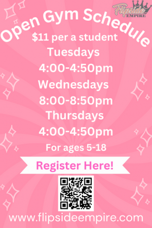 Open Gym offers a supervised yet unstructured environment where individuals can practice and improve their tumbling skills at their own ...
