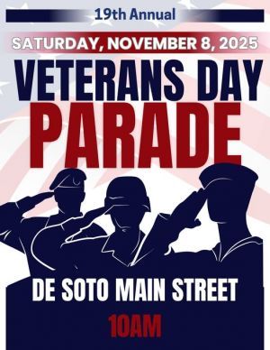 Please join us on Main Street at 10 am!!! The Veterans Day Parade is sponsored by the De Soto Elks ...