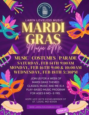It may not be Soulard, but our Music & Me Mardi Gras week is bringing the fun—costumes, festive tunes, and ...