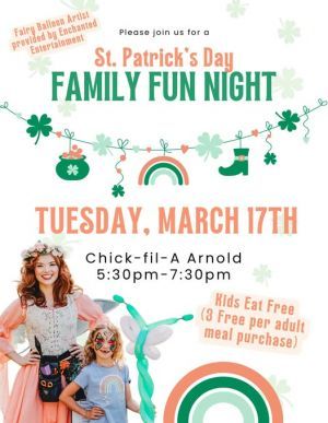 Join us for a night of fun with the family!! Tuesday, March 17th, from 5:30 - 7:30 pm, we will be ...