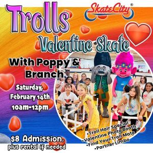 Get ready to skate into a world of color, music, and love at our Trolls Valentine Skate! Join us for ...