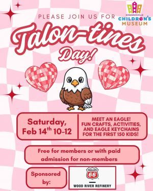 Celebrate Talon-tine's Day at the Edwardsville Children's Museum! On Saturday, February 14th from 10-12 we will have a bald eagle ...