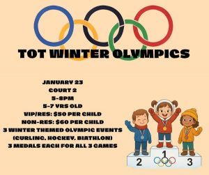 Bring the Olympic spirit to life! Kids ages 5-7 will represent countries, compete in 3 fun winter-themed games (Curling, Hockey, ...