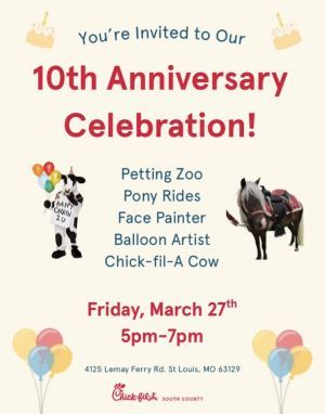 Join us for the celebration of our 10th Anniversary on Friday, March 27th from 5-7pm here at our store! There will ...
